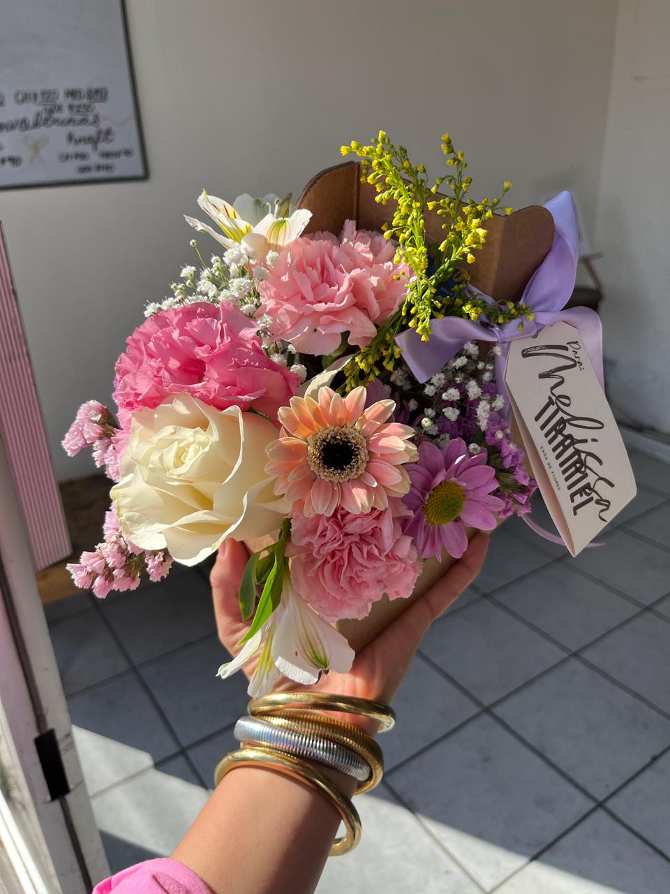 mini gerberas, rosas, mini rosas, lisianthus, alstroemerias, margaritas, claveles, solidago, statice y limonium —
