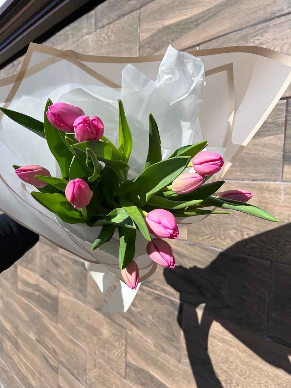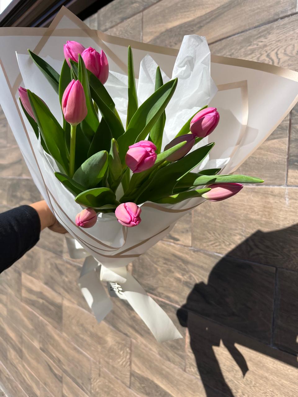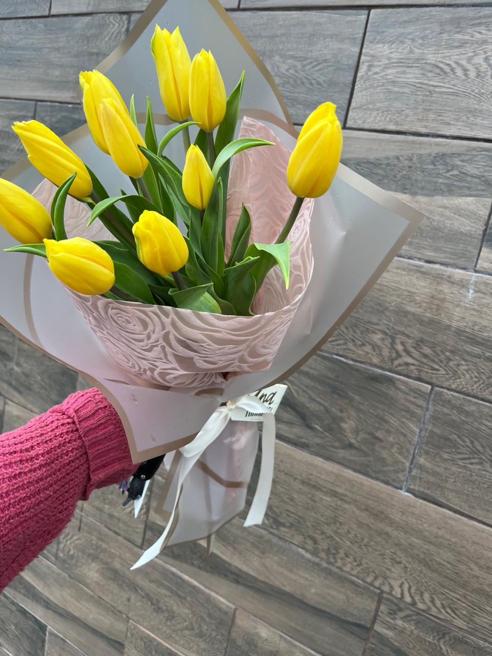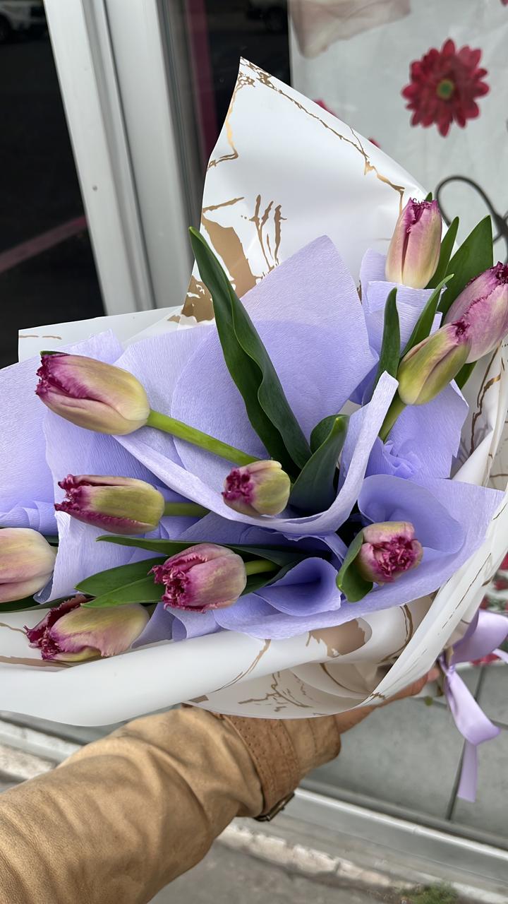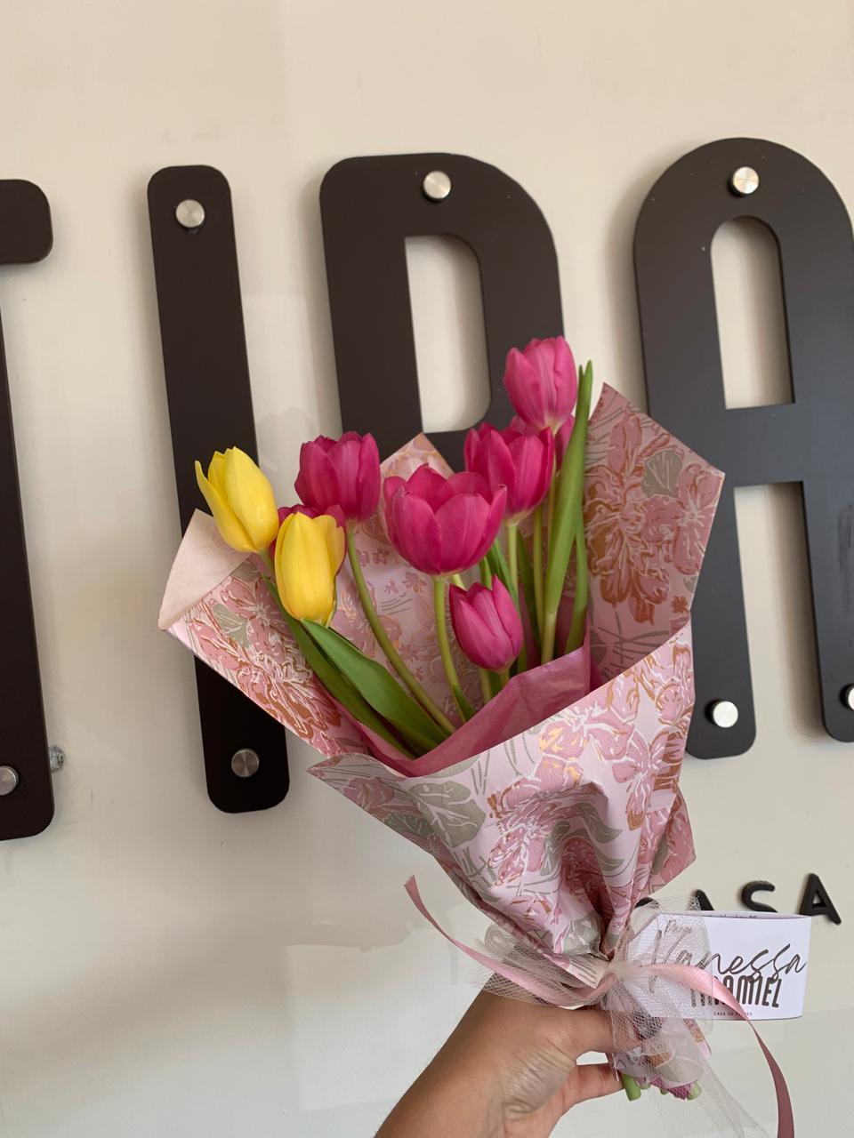 Tulipanes frescos, envueltos en papel coreano a prueba de agua,